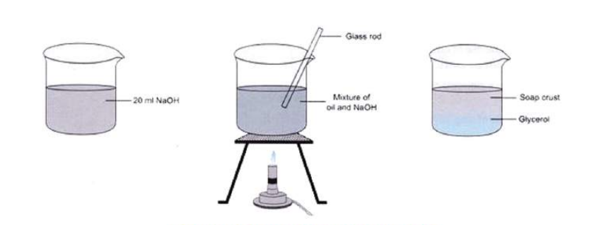 - Mix the oil and NaOH solution and heat the mixture gently while stirring.