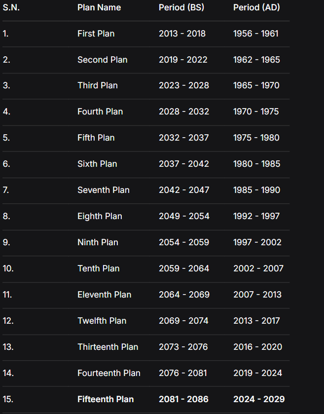 - Table: History of Economic Plans in Nepal