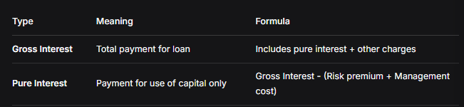 - Gross Interest = Pure Interest + Risk premium + Management cost