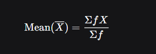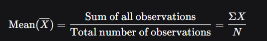 where Σ = Summation, X = Individual values, N= Total number of values.