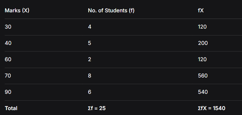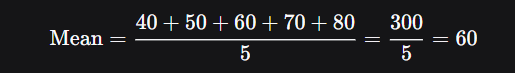 Example: Marks of 5 students: 40, 50, 60, 70, 80.