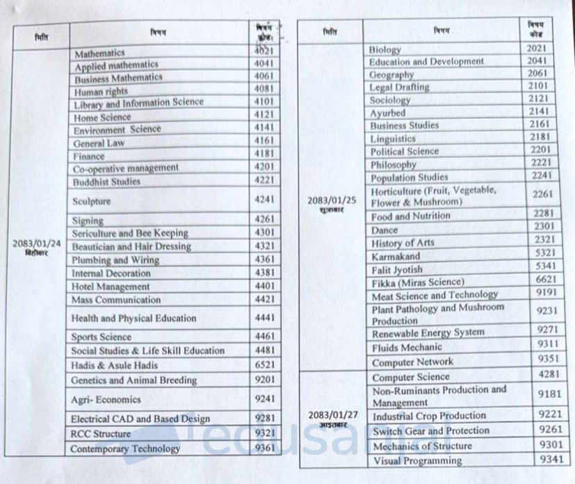 | 2083/01/15 | Tuesday | Compulsory Nepali | 0021 |