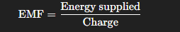 Electromotive force is the energy supplied by a source per unit charge.