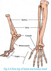 - Human hand, horse leg, bat wing, whale flipper