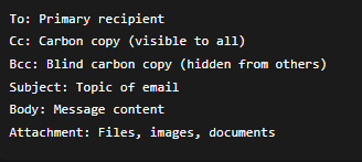 - Components: Sender, Recipient, Subject, Body, Attachments