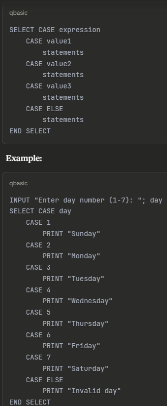 Different Control Statements in QBASIC